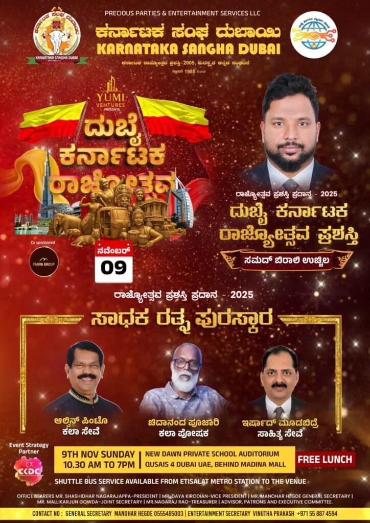 ನ.9ರಂದು ದುಬೈ ಕರ್ನಾಟಕ ಸಂಘದಿಂದ “ದುಬೈ ಕರ್ನಾಟಕ ರಾಜ್ಯೋತ್ಸವ -2025”: ಸಮದ್ ಬಿರಾಲಿಗೆ “ದುಬೈ ಕರ್ನಾಟಕ ರಾಜ್ಯೋತ್ಸವ ಪ್ರಶಸ್ತಿ-2025”
