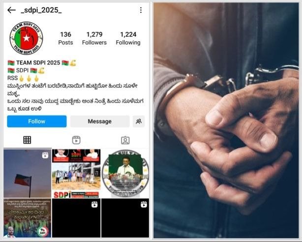 Mangaluru | TEAM SDPI ಹೆಸರಲ್ಲಿ ಹಿಂದುಗಳ ಬಗ್ಗೆ ನಿಂದಿಸಿ ಪ್ರಚೋದನಕಾರಿ ಪೋಸ್ಟ್ ; ವಿದೇಶದಲ್ಲಿ ಕುಳಿತು ಇನ್ ಸ್ಟಾಗ್ರಾಮ್ ಪೋಸ್ಟ್ ಹಾಕಿದ್ದ ವ್ಯಕ್ತಿ ಅರೆಸ್ಟ್ December 15, 2025 No Comments Read More »